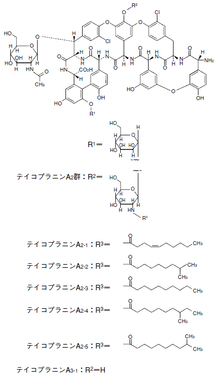 テイコプラニンA2-1、テイコプラニンA2-2、テイコプラニンA2-3、テイコプラニンA2-4、テイコプラニンA2-5及びテイコプラニンA3-1等の混合物