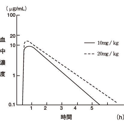 小児の場合は、1日量15~40mg(力価)/kgとし、これを3~4回に分割して経口投与する。