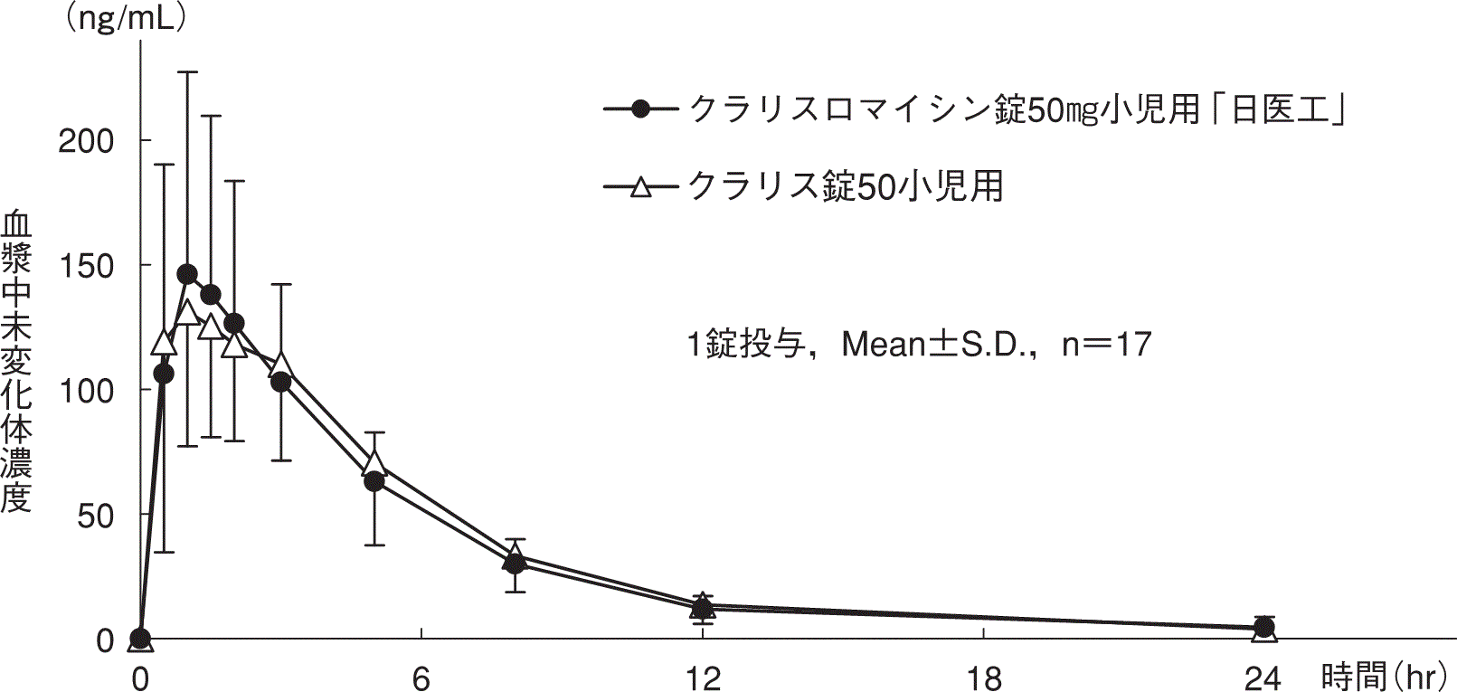小児に10mg(力価)/kgを単回経口投与したときの血清中濃度には、食事の影響がほとんど認められなかった23)。