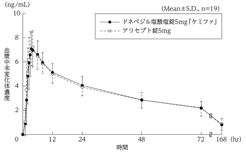 2) 健康成人における薬物動態(反復経口投与試験)(アリセプト錠:1999年10月8日承認、申請資料概要 ヘ.3.(1))
