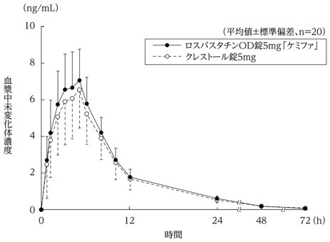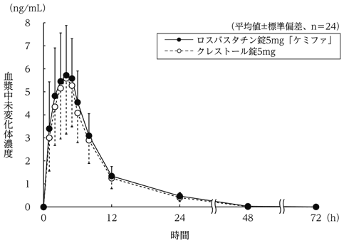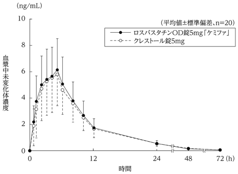 5) 単回投与後の血漿中濃度(クレストール錠:2005年1月19日承認、申請資料概要へ3.3.1.2)