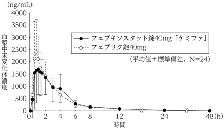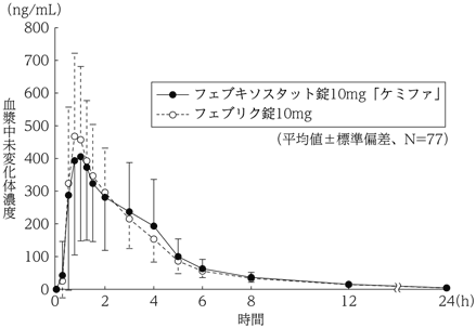 5) 血漿中濃度(健康成人、単回)(フェブリク錠:2011年1月21日承認、申請資料概要2.7.6.5)