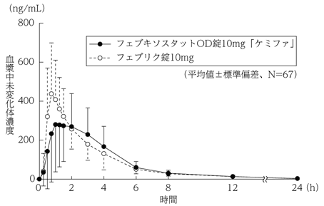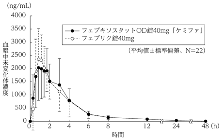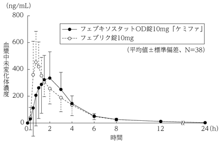 5) 血漿中濃度(健康成人、単回)(フェブリク錠:2011年1月21日承認、申請資料概要2.7.6.5)