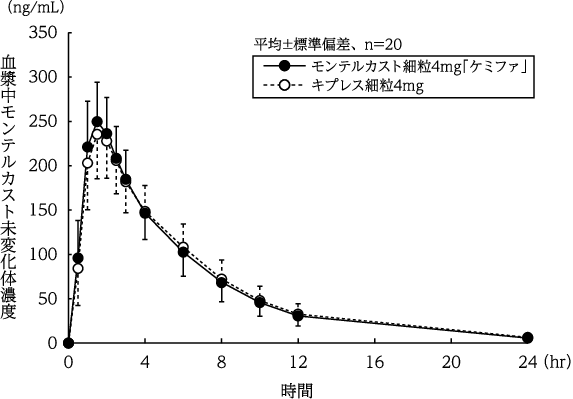 4) 薬物動態試験の要約(シングレア細粒、キプレス細粒:2007年7月31日承認、申請資料概要2.7.2.5)
