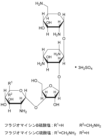(フラジオマイシンB硫酸塩)2,6-Diamino-2,6-dideoxy-α-D-glucopyranosyl-(1→4)-[2,6-diamino-2,6-dideoxy-β-L-idopyranosyl-(1→3)-β-D-ribofuranosyl-(1→5)]-2-deoxy-D-streptamine trisulfate(フラジオマイシンC硫酸塩)2,6-Diamino-2,6-dideoxy-α-D-glucopyranosyl-(1→4)-[2,6-diamino-2,6-dideoxy-α-D-glucopyranosyl-(1→3)-β-D-ribofuranosyl-(1→5)]-2-deoxy-D-streptamine trisulfate