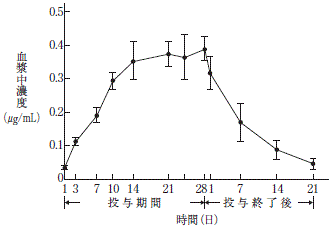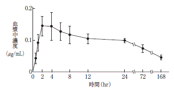 健康成人における本剤の血漿中からの消失半減期は約150時間である。