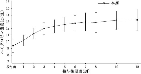 投与開始12週後までのヘモグロビン濃度の推移図は以下のとおりであった。