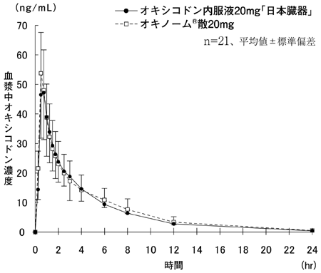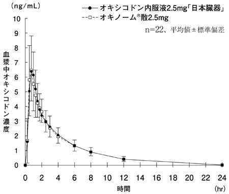 2) 社内資料:オキシコドン内服液の生物学的同等性試験