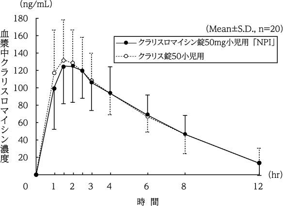小児に10mg(力価)/kgを単回経口投与したときの血清中濃度には、食事の影響がほとんど認められなかった23)。