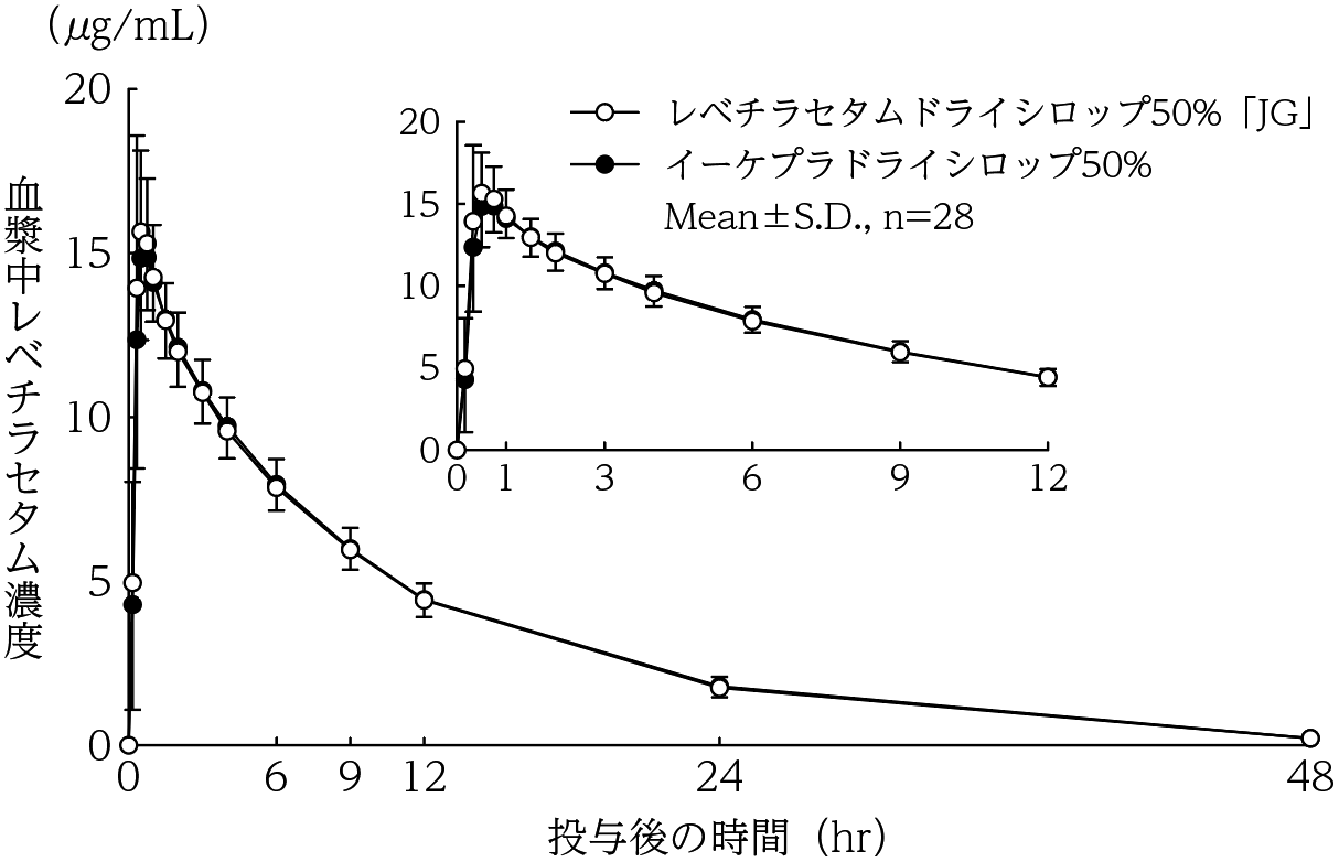 3) 日本人健康成人におけるレベチラセタム単回投与時の薬物動態(イーケプラ錠:2010年7月23日承認、申請資料概要 2.7.6.3.1)