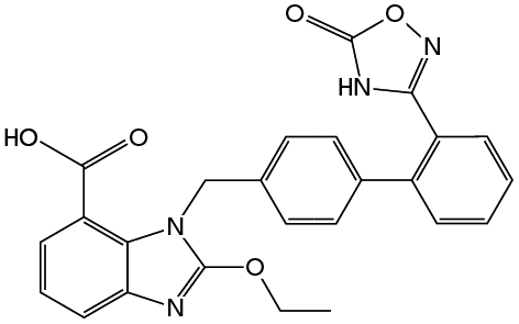 アジルサルタンはアンジオテンシンⅡタイプ1(AT1)受容体に結合してアンジオテンシンⅡと拮抗し、主にその強力な血管収縮作用を抑制することによって生ずる末梢血管抵抗の低下により降圧作用を示す23) 。
