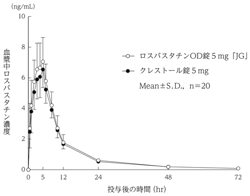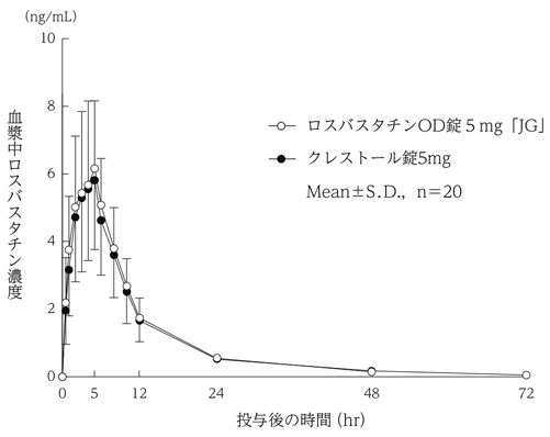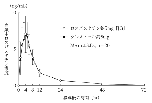 5) 単回投与後の血漿中濃度, 1996(クレストール錠:2005年1月19日承認、申請資料概要 へ 3.3.1.2)
