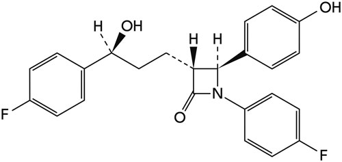エゼチミブは食事性及び胆汁性コレステロールの吸収を阻害する。エゼチミブの作用部位は小腸であり、ハムスター等を用いた動物試験において、小腸でのコレステロールの吸収を選択的に阻害し、その結果、肝臓のコレステロール含量を低下させ、血中コレステロールを低下させた34),35),36),37)。エゼチミブは小腸壁細胞に存在する蛋白質(Niemann-Pick C1 Like 1)を介してコレステロール及び植物ステロールの吸収を阻害する38),39),40)。このことから、エゼチミブの作用機序は他の高脂血症治療剤(HMG-CoA還元酵素阻害剤、陰イオン交換樹脂、フィブラート系薬剤、植物ステロール)とは異なる。18例の高コレステロール血症患者を対象とした海外の臨床薬理試験において、エゼチミブは2週間の投与により小腸でのコレステロール吸収をプラセボ群に比し54%阻害した41)。エゼチミブは小腸でのコレステロール吸収阻害により肝臓のコレステロール含量を低下させるが、肝臓でのコレステロールの生合成が代償的に亢進する。コレステロールの生合成を抑制するHMG-CoA還元酵素阻害剤との併用により、血中コレステロールが相補的に低下することが、イヌを用いた試験36)及び海外の高コレステロール血症患者を対象とした試験42),43),44)において示された。また、ラット等において、エゼチミブはコレステロール及び植物ステロールの吸収を選択的に阻害するが、脂肪酸、胆汁酸、プロゲステロン、エチニルエストラジオール並びに脂溶性ビタミンA及びDの吸収には影響しなかった34)。