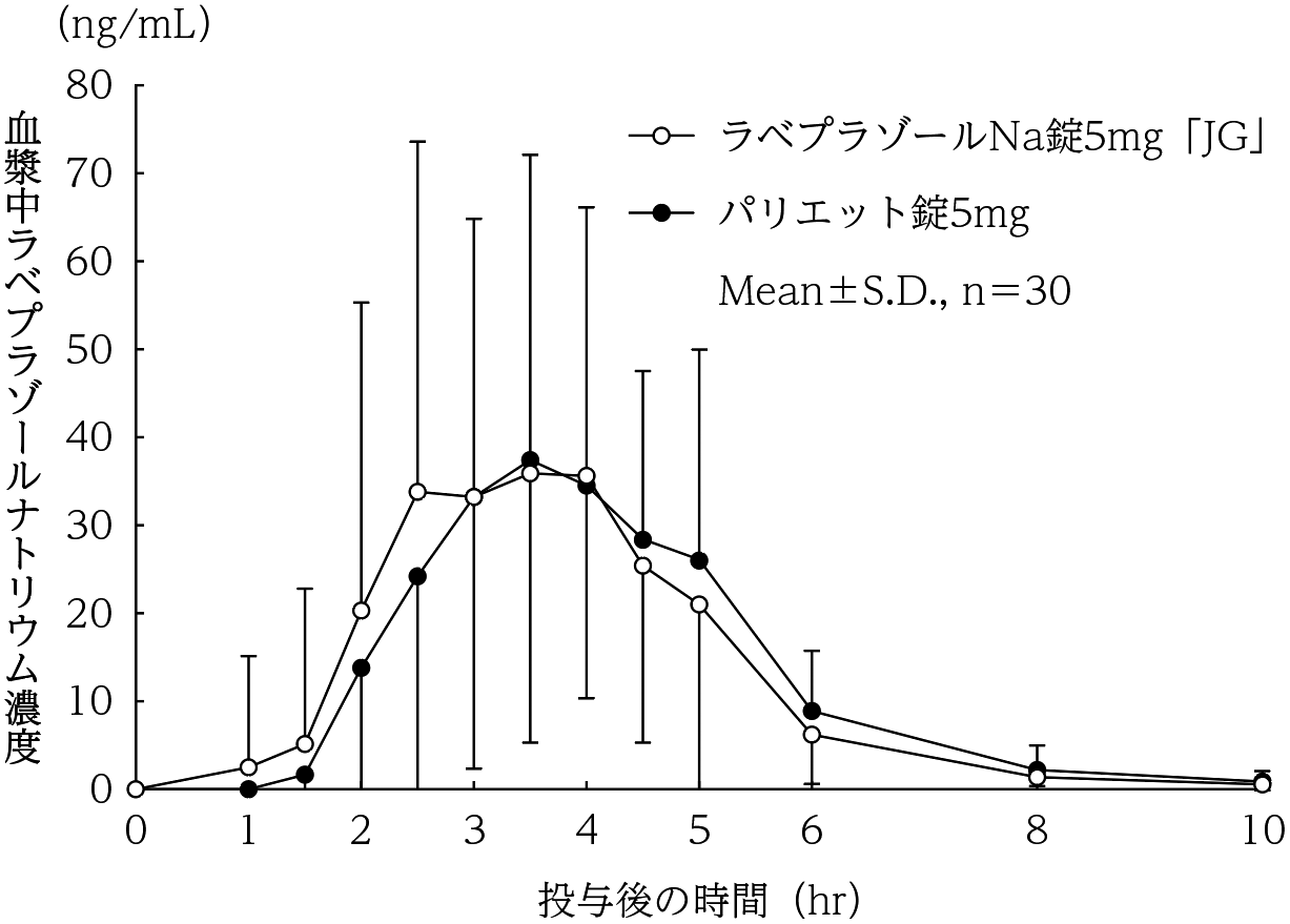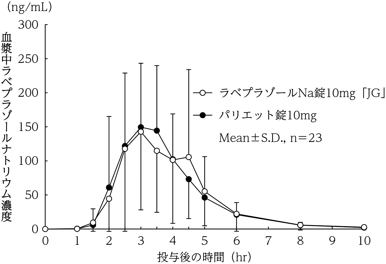 通常、成人にはラベプラゾールナトリウムとして1回10mgを1日1回経口投与する。なお、通常、4週間までの投与とする。