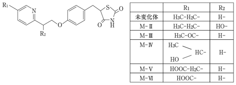 健康成人男子(14例)に空腹時にピオグリタゾンとして1回30mgを単回経口投与した時、尿中には主としてM-Ⅳ~Ⅵが排泄され、投与後48時間までの累積尿中排泄率は約30%である13)。