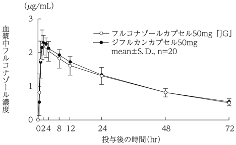 骨髄移植患者357例を対象に比較臨床試験において、フルコナゾール(カプセル又は静注液)として400mgを1日1回経口又は静脈内投与した群では予防不成功注)は58.7%(105/179例)、プラセボ投与群では予防不成功は69.5%(123/177例)であった52)。注)予防不成功:全身性感染確定(proven)及び全身性感染疑い(suspected)を予防投与の不成功とした。