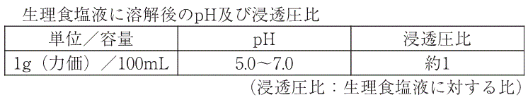 白色~淡黄色の結晶又は結晶性の粉末である。水、メタノール又はホルムアミドに溶けやすく、エタノール(95)に溶けにくく、アセトニトリルにほとんど溶けない。