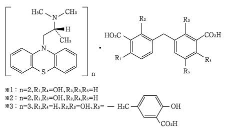 ※1:(2RS)-N,N-Dimethyl-1-(10H-phenothiazin-10-yl)propan-2-ylamine 5,5'-methylenedi(2-hydroxybenzoate)
