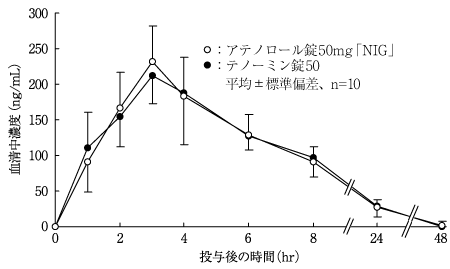 通常成人には1錠(アテノロールとして50mg)を1日1回経口投与する。
