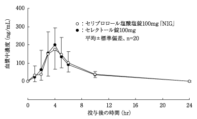 狭心症患者にセリプロロール塩酸塩を単回経口投与した場合、血漿中濃度は健康成人と類似していた2)。