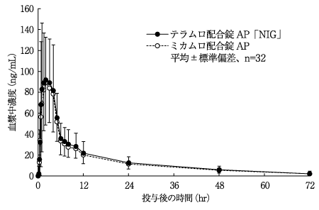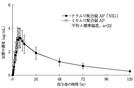 7) 健康成人での薬物動態試験(ミカムロ配合錠;2010年7月23日承認、CTD 2.7.6.2、2.7.2)