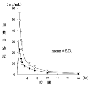 健康成人に単回点滴静注した時の血漿中濃度を図1に、薬物動態パラメータを表1に示す5)。