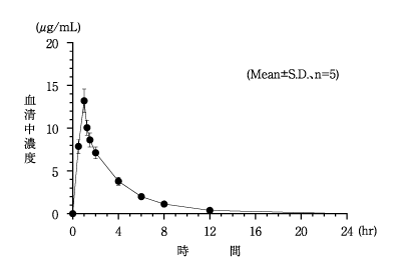 また、クレアチニン・クリアランス(Ccr)が50未満の患者の24時間までの尿中排泄率は56.9%でCcrが100の健康成人のそれは90.3%で明らかに障害程度が高くなるにつれ、尿中排泄の遅延傾向が認められた。