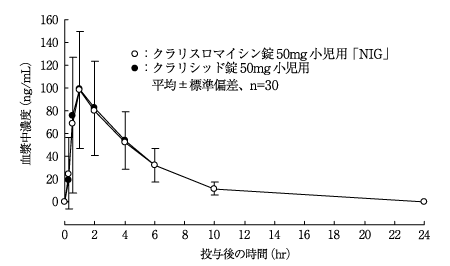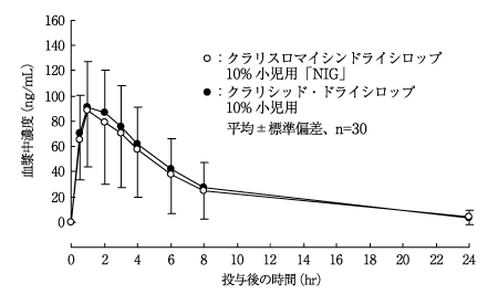 小児に10mg(力価)/kgを単回経口投与したときの血清中濃度には、食事の影響がほとんど認められなかった23)。