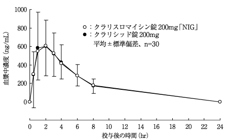 23) 薬物動態の結果(クラリス錠/クラリシッド錠等;2007年1月26日承認、申請資料概要2.7.6.1.4)