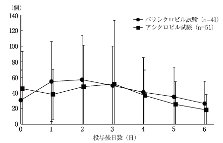 バラシクロビル500mgを1日2回(12時間毎)又は1000mgを1日3回(8時間毎)6日間反復経口投与した場合、数回の投与で血漿中アシクロビル濃度は定常状態に達し、トラフ濃度の平均はそれぞれ0.22~0.29μg/mL及び0.94~1.18μg/mLであり蓄積性は認められなかった5)。