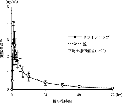 ※:ドライシロップ/錠(平均±標準偏差、n=20)