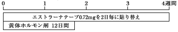 ○長期投与(6カ月以上)本剤0.72mgを2日毎に貼り替え3週間連続貼付し、1週間休薬。本剤0.72mg貼付期間の後半12日間は黄体ホルモン剤を併用。黄体ホルモン剤は原則として酢酸メドロキシプロゲステロン(MPA)5mg/日を投与。