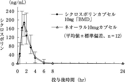 通常、シクロスポリンとして1日量6mg/kgを1日2回に分けて経口投与する。なお、患者の状態により適宜増減する。