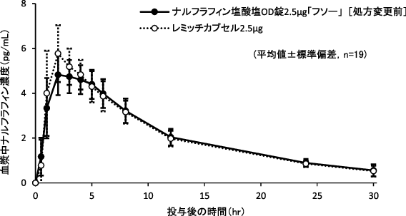 通常、成人には、ナルフラフィン塩酸塩として1日1回2.5μgを夕食後又は就寝前に経口投与する。なお、症状に応じて増量することができるが、1日1回5μgを限度とする。