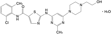 ダサチニブ水和物は白色~微黄白色の粉末である。ジメチルスルホキシド又はN,N-ジメチルアセトアミドに溶けやすく,エタノール(99.5)に溶けにくく,水にほとんど溶けない。