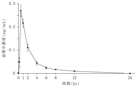 健康成人6例に本剤50mgを空腹時単回経口投与したときの血清中濃度は以下のとおりであった2) 。