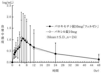 6) 社内資料:生物学的同等性試験(パロキセチン錠10mg「フェルゼン」)