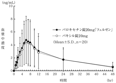 7) 社内資料:生物学的同等性試験(パロキセチン錠20mg「フェルゼン」)