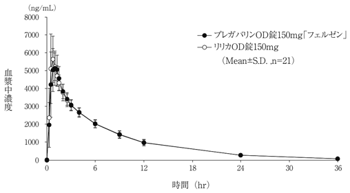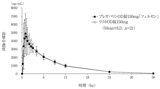 7) 社内資料:生物学的同等性試験(プレガバリンOD錠150mg「フェルゼン」)