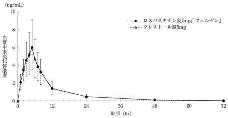 5) 単回投与後の血漿中濃度(クレストール錠:2005年1月19日承認、申請資料概要へ 3.3.1.2)