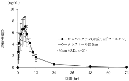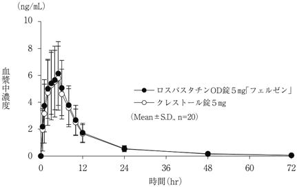 5) 単回投与後の血漿中濃度,1996(クレストール錠:2005年1月19日承認、申請資料概要へ 3.3.1.2)