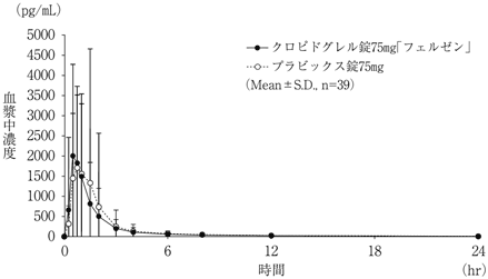 10) 社内資料:生物学的同等性試験(クロピドグレル錠75mg「フェルゼン」)