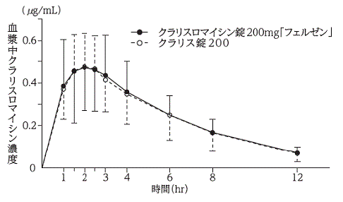 通常、成人にはクラリスロマイシンとして1日400mg(力価)を2回に分けて経口投与する。なお、年齢、症状により適宜増減する。