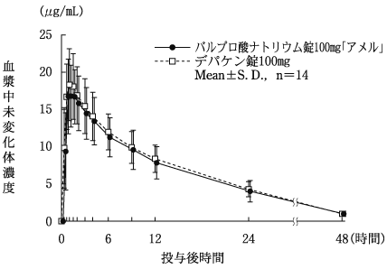 11) 薬物動態(デパケンR錠:2002年9月20日承認、審査報告書 へ.(1))