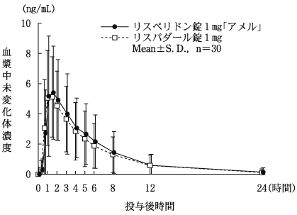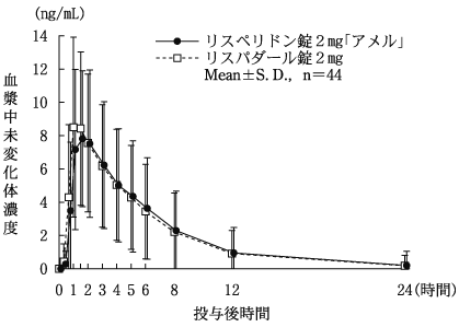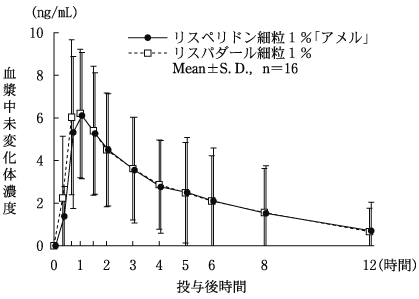 患者の状態を観察しながら少量(1回0.5mg)から投与するなど、慎重に投与すること。高齢者では錐体外路症状等の副作用があらわれやすく、また、腎機能障害を有する患者では最高血漿中濃度が上昇し、半減期が延長することがある。