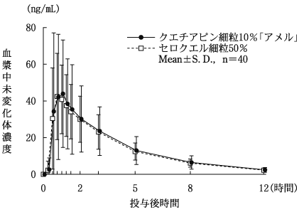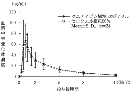 2) 患者及び高齢者における血漿中濃度(セロクエル錠/細粒:2000年12月12日承認、申請資料概要 へ.3.(2))