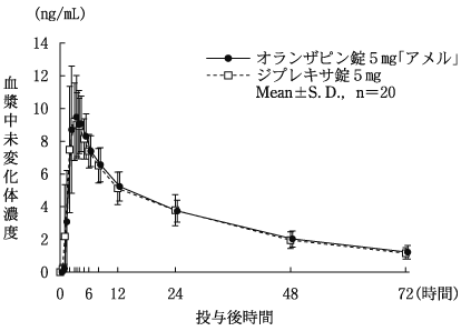 5) 健常人における薬物動態(ジプレキサ錠:2000年12月22日承認、申請資料概要 ヘ.3.2.1)