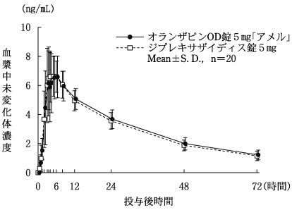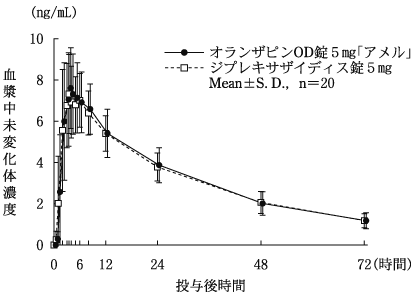 7) 健常人における薬物動態(ジプレキサ錠:2000年12月22日承認、申請資料概要 ヘ.3.2.5)