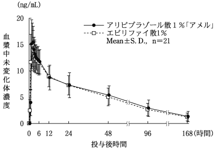 21) 活性炭併用投与時の薬物動態(エビリファイ錠/散:2006年1月23日承認、申請資料概要 2.7.6.3)