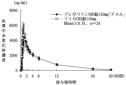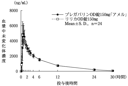 5) 健康成人における薬物動態(単回投与)(リリカカプセル:2010年4月16日承認、申請資料概要 2.7.2.2.2.1.1)